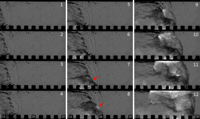 李权研究团队搭建矩形实验通道,通过时间同步与空间校准技术,系统融合高速纹影、烟迹示踪、流场诊断及压力测量功能,构建DDT全维度、多尺度综合测试表征体系;同时在系统测试段底部创新设计粗糙壁面,针对不同反应活性可燃气体,多角度/维度探究其DDT演化规律。该研究实现了入射燃烧波结构与壁面粗糙度特性的耦合分析,揭示了粗糙壁面条件下多类DDT机制,既为爆轰发动机设计、可燃气体灾害防控提供关键技术支撑,也丰富了燃烧动力学多尺度耦合机制的基础理论,兼具重要工程应用价值与科学探索意义。